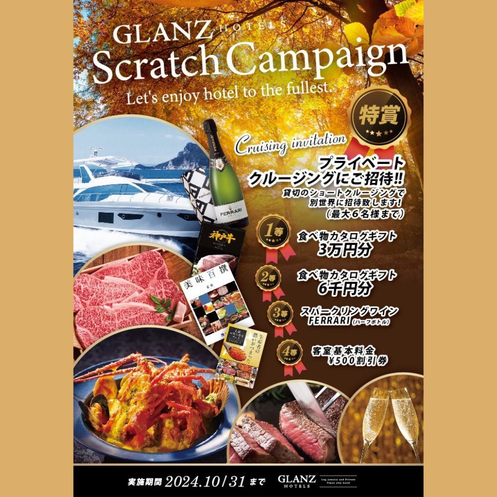 . [ご利用のお客様全員対象] お部屋にあるスクラッチを削って当てよう✨ 特賞はプライベートクルージングにご招待(最大6名様まで) 他にも食べ物カタログギフト3万円分やスパークリングワイン、客室割引券もご用意! ご宿泊の際は是非ご参加ください。 実施期間:2024/10/31まで ――――――――――――――――― ◆ HOTEL THE GLANZ ◆ -ホテル ザ グランツ麻布十番- 東京都港区麻布十番2-21-3 ▷ご予約は公式HPから ―――――――――――――――――