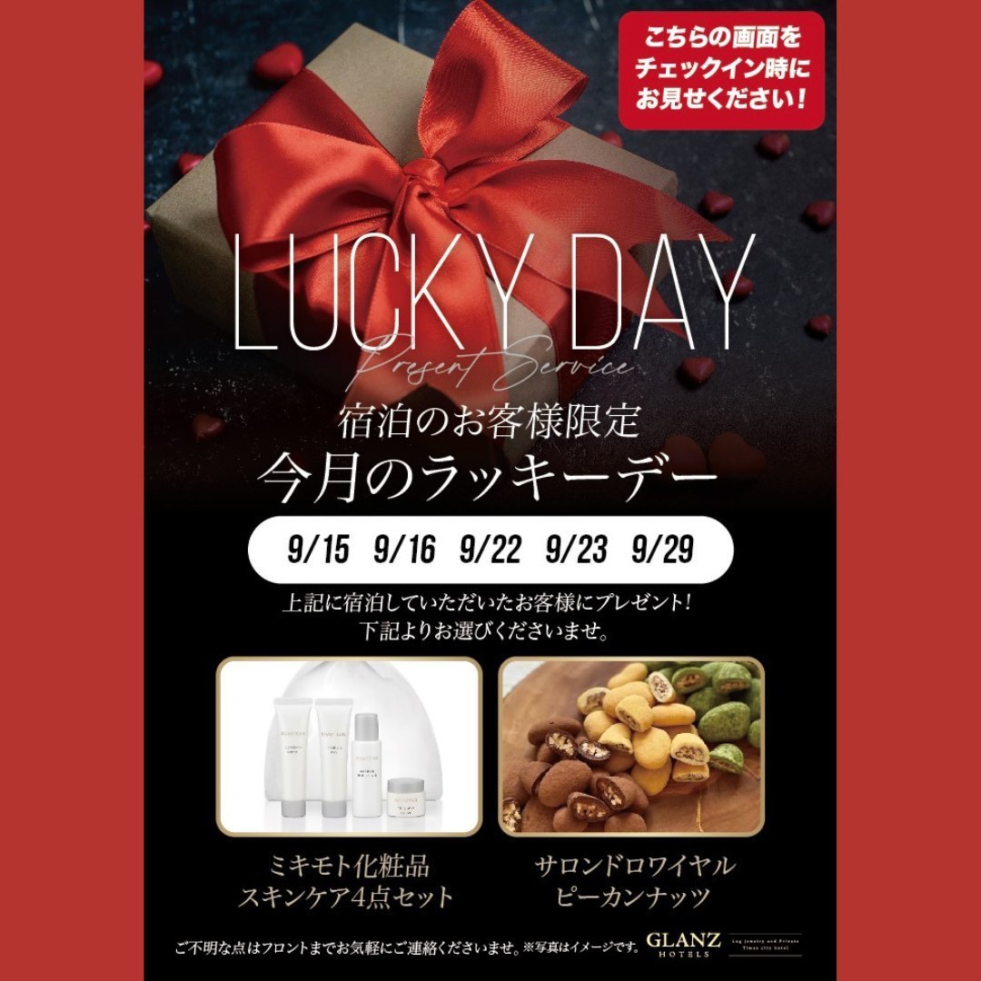 . 【宿泊のお客様限定!】 対象の日に宿泊していただけたお客様に画面の提示で特別な特典をプレゼントいたします😊 今月の対象日は下記の5日になります✨ 9/15(日)、9/16(月)、9/22(日)、9/23(月)、9/29(日) みなさまのお越しをお待ちしております! ――――――――――――――――― ◆ HOTEL THE GLANZ ◆ -ホテル ザ グランツ麻布十番- 東京都港区麻布十番2-21-3 ▷ご予約は公式HPから ―――――――――――――――――