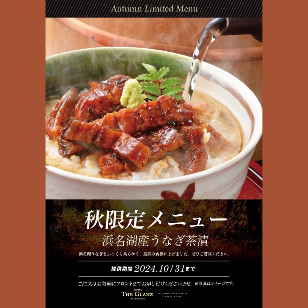 . 【期間限定!贅沢うなぎ茶漬け】 ホテル ザ グランツ麻布十番では、秋限定の特別メニューとして 「浜名湖産うなぎ茶漬け」を提供中! ふっくらと柔らか食感に仕上げ、浜名湖産うなぎの良さを最大限に引き出したうなぎ茶漬けになっております。 ご注文の際はお気軽にフロントまでお申し付けください。 提供期間:2024/10/31まで ※写真はイメージです。 ――――――――――――――――― ◆ HOTEL THE GLANZ ◆ -ホテル ザ グランツ麻布十番- 東京都港区麻布十番2-21-3 ▷ご予約は公式HPから ―――――――――――――――――